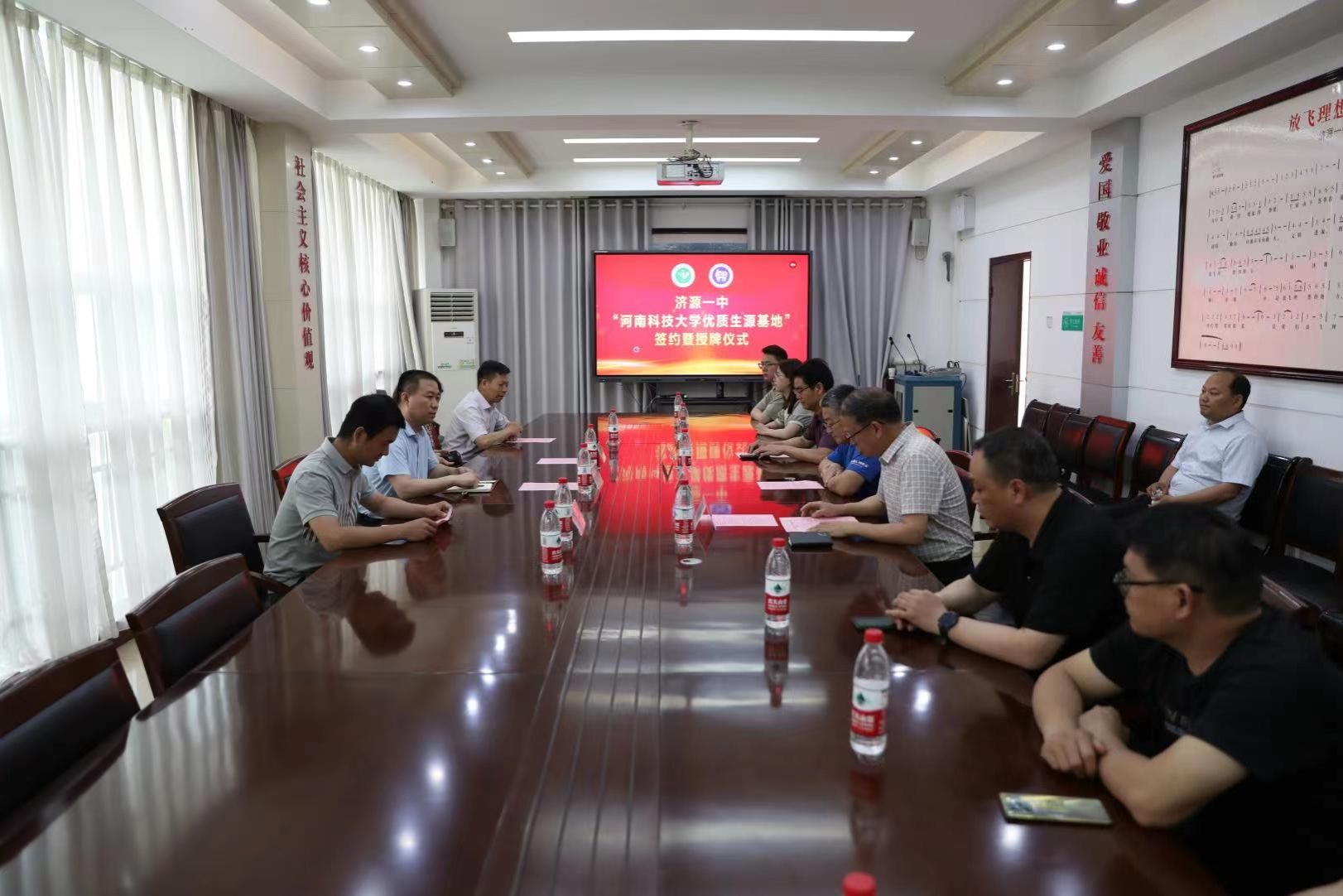 党委副书记贾海波,学工办主任李芳,冶金工程系主任汪宙,材料成型系教授张占领,济源一中党委书记、校长韩玉奎,党委副书记、副校长汤初胜,党政办主任孔会军以及高三年级教师代表出席签约仪式。