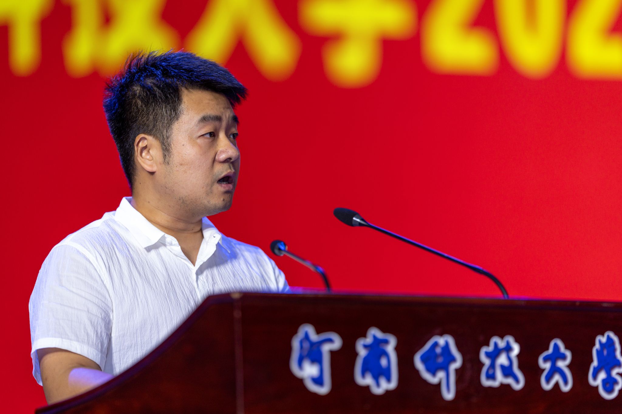 教师代表尹丹青发言,他希望大家保持品行、以德立身,胸怀大志、追求卓越,老实做人、踏实干事,做社会发展的中流砥柱,始终与祖国同心、同向、同行,坚定不移听党话、跟党走。