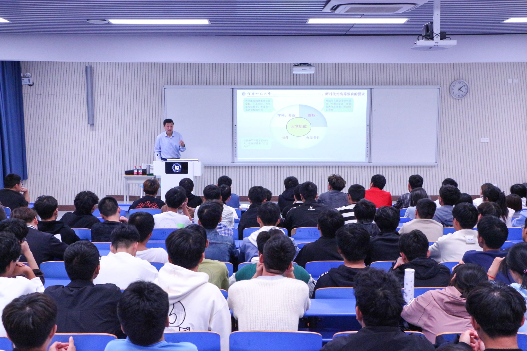 讲座主要围绕新时代对高等教育的要求、学校发展概况和个人成长体会等3个方面内容展开。他详细讲述了大学教育的特点、为什么上大学、如何上好大学、如何让知识能力素质协调发展、大学教育如何适应中国式现代化等同学们关心的问题。讲座中,苏澎老师以生动的案例、幽默的语言和精彩的互动,使枯燥的内容变得生动,引起了在场师生的极大兴趣。最后,苏澎老师还送给学生了四句话:保持一种爱好、坚持一项运动、树立阳光心态和描绘美好人生。