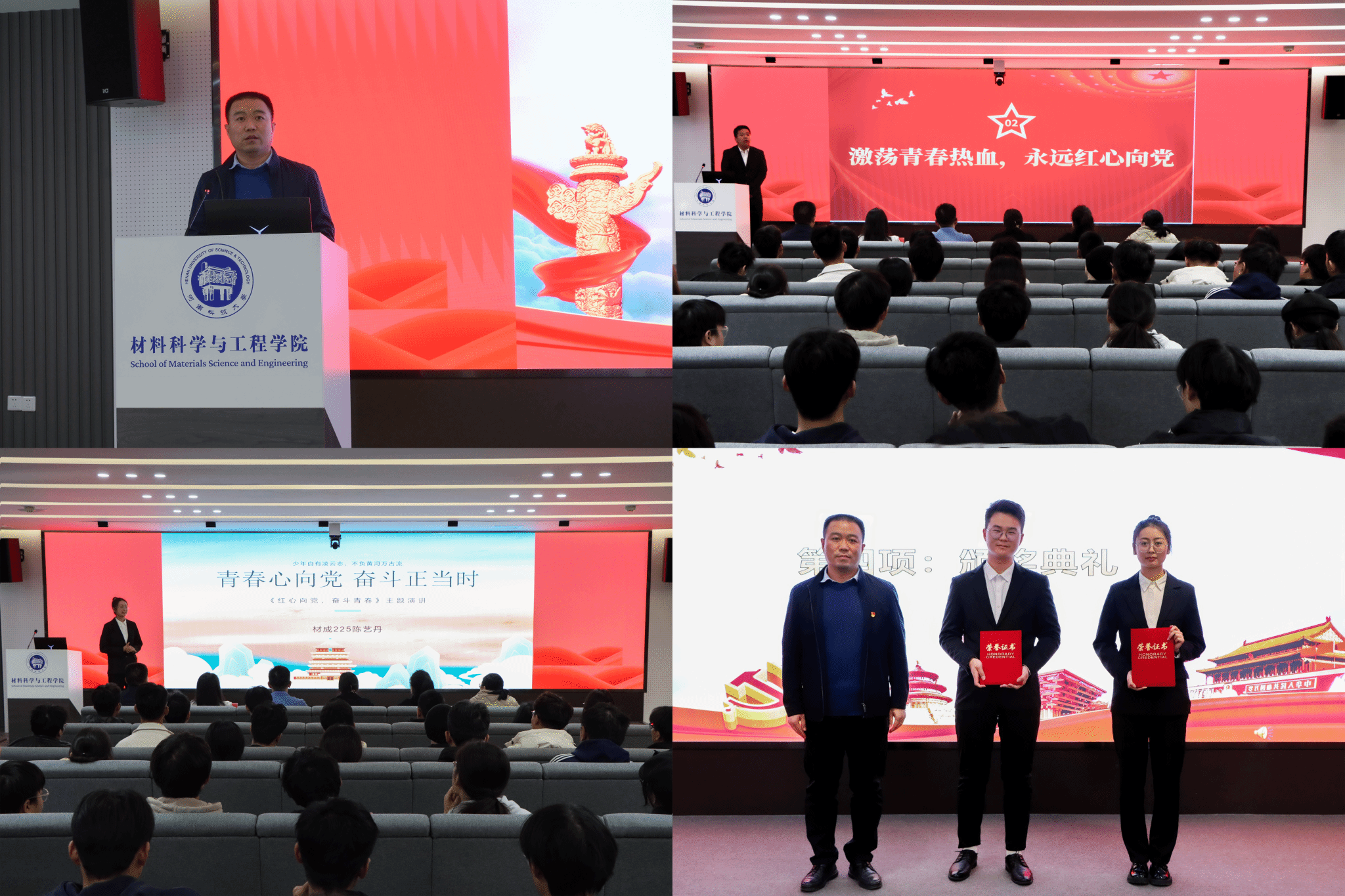 党委副书记贾海波出席典礼。演讲比赛评委分别由马克思主义学院教师倪小鹏、党委组织部教育培训科科长张亚楠、党委本科生工作部综合科副科长石文娟、化学化工学院组织员孟利芬、外国语学院组织员王靓靓、园艺与植物保护学院组织员杨雪、每日大赛