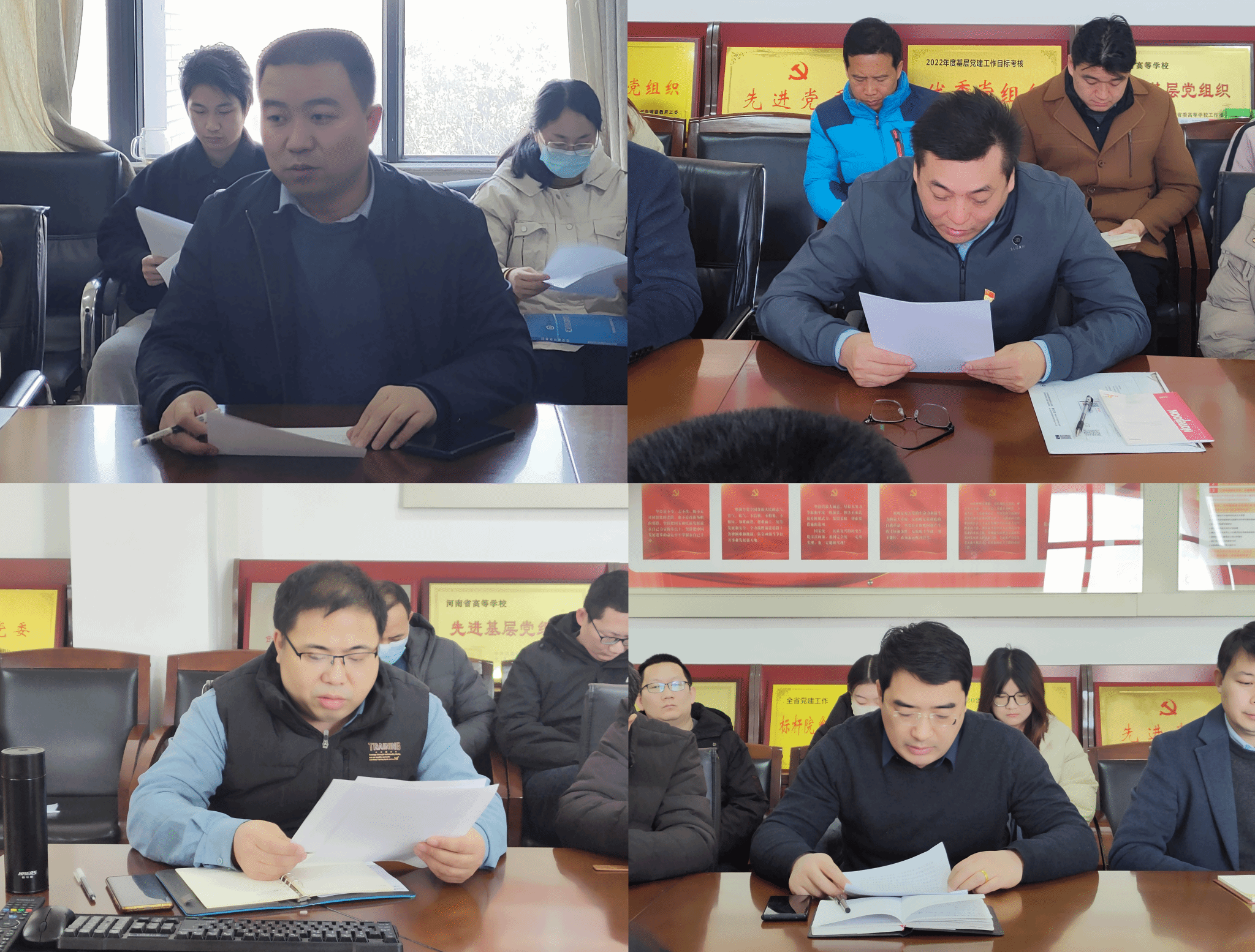 会上,各党支部书记围绕《中国共产党普通高等学校基层组织工作条例》中明确的党支部职责,对照“七个有力”,汇报了个人本年度组织支部和党员开展学习贯彻习近平新时代中国特色社会主义思想主题教育情况、履行基层党建工作“第一责任人”责任情况、组织生活制度落实情况、发展党员工作情况、党员教育管理监督和党员先锋模范作用发挥情况等内容,总结工作成绩、展示工作亮点,梳理了问题不足,明确了今后打算。