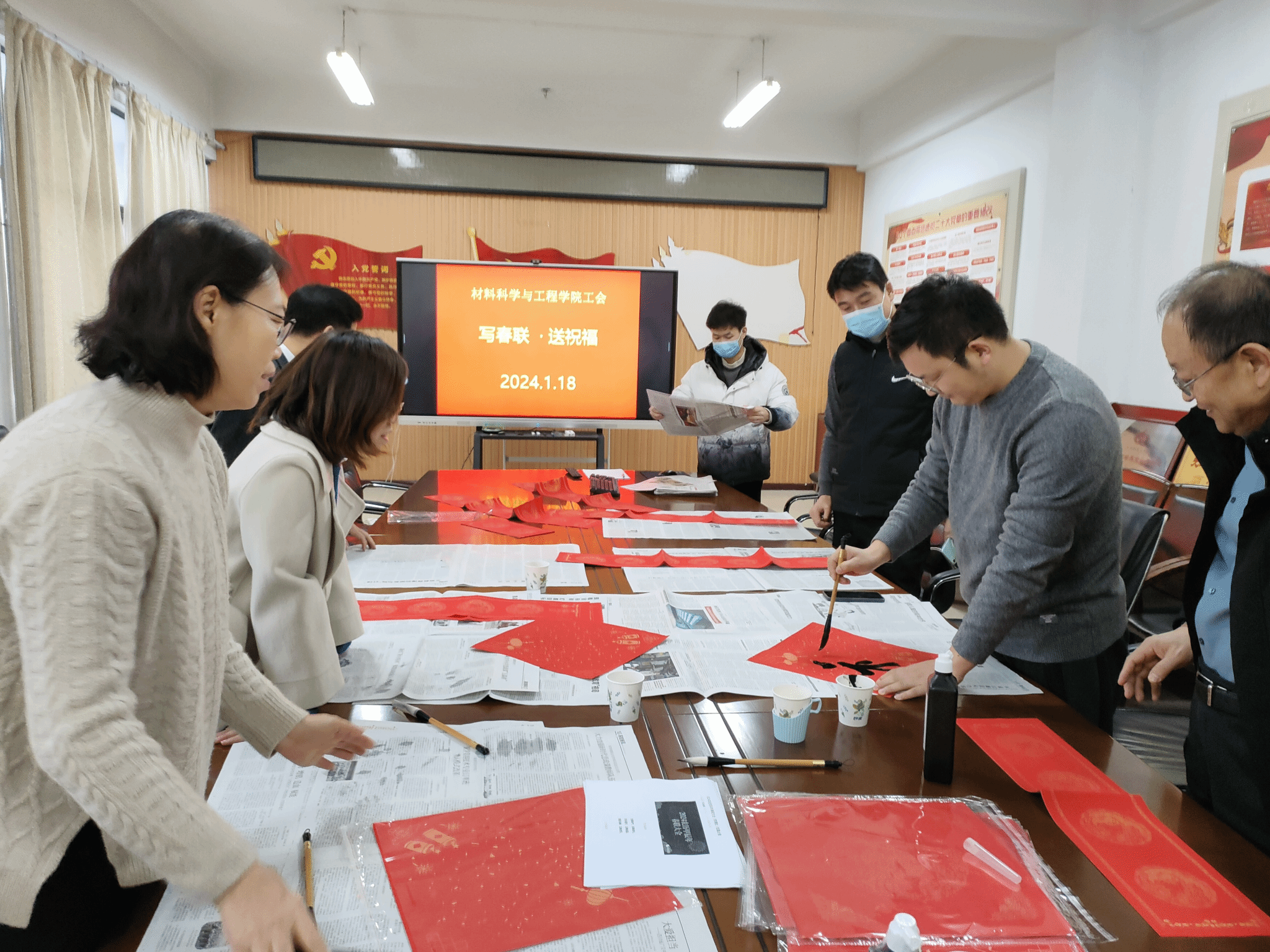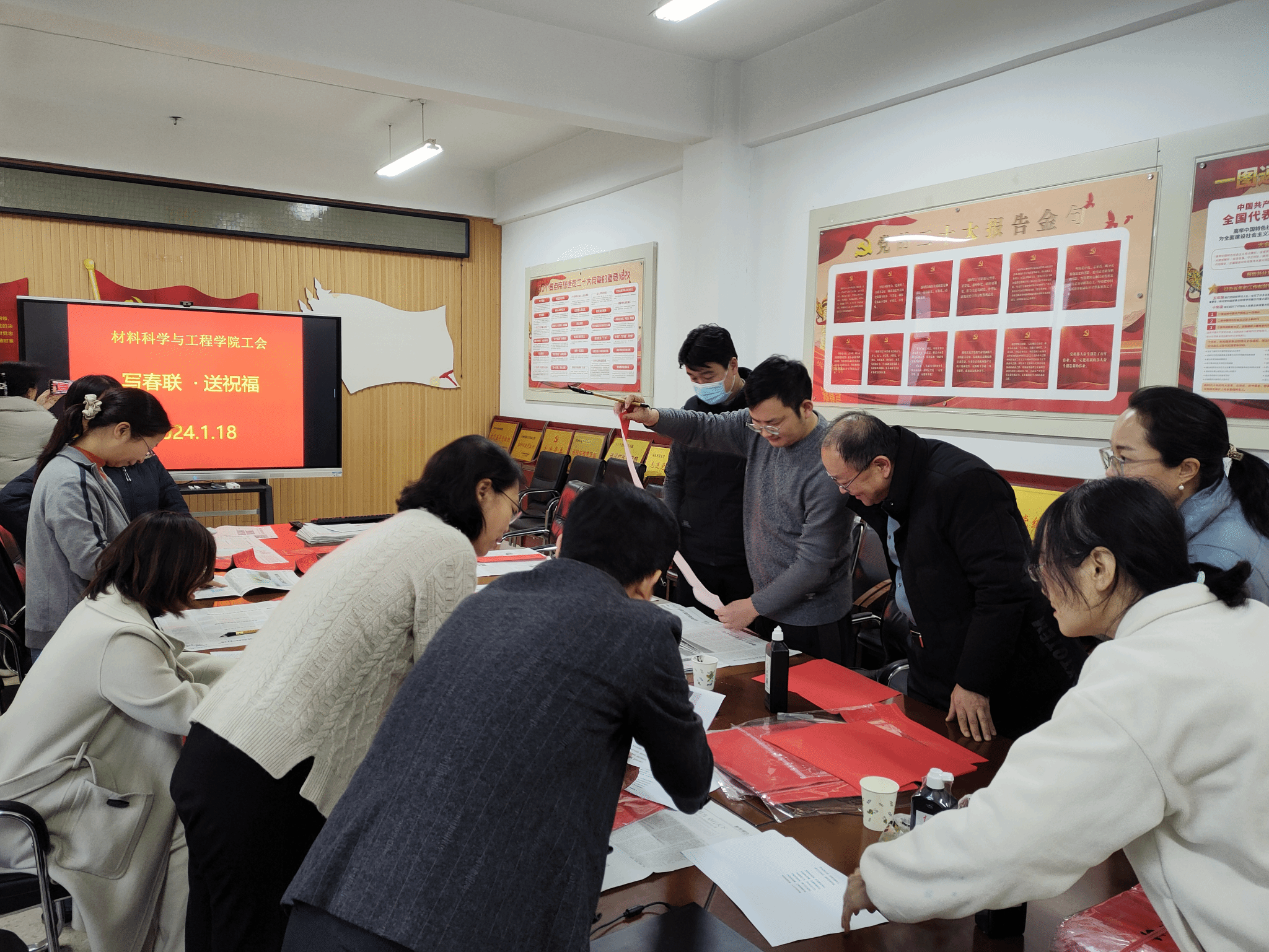 工会组织热心而且有专长的教师在203会议室开展“写春联 送祝福”活动,学院教师程楚副教授现场为老师们挥毫泼墨,欢声笑语中与大家一起交流切磋,一幅幅精美的春联代表着一声声祝福,送到辛勤工作一年的教职工手中。