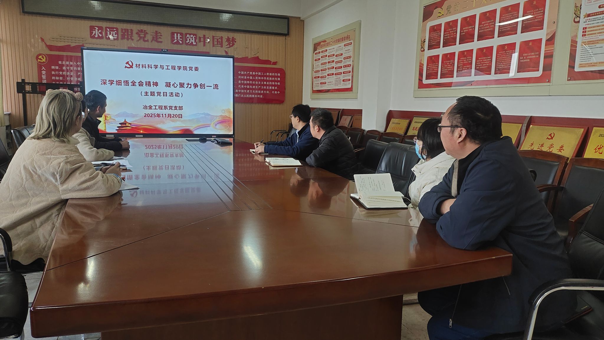 冶金工程系党支部在工科1-203会议室召开“深学细悟全会精神,凝心聚力争创一流”主题党日活动。活动由党支部书记汪宙主持,支部全体成员参加。