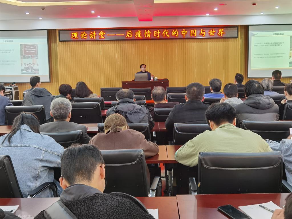 邀请到马克思主义学院梁爱强教授在工科一号楼5059报告厅讲授以“后疫情时代的中国与世界”为主题的理论讲堂。理论讲堂由学院党委书记李怀民主持,学院100余名师生参加。