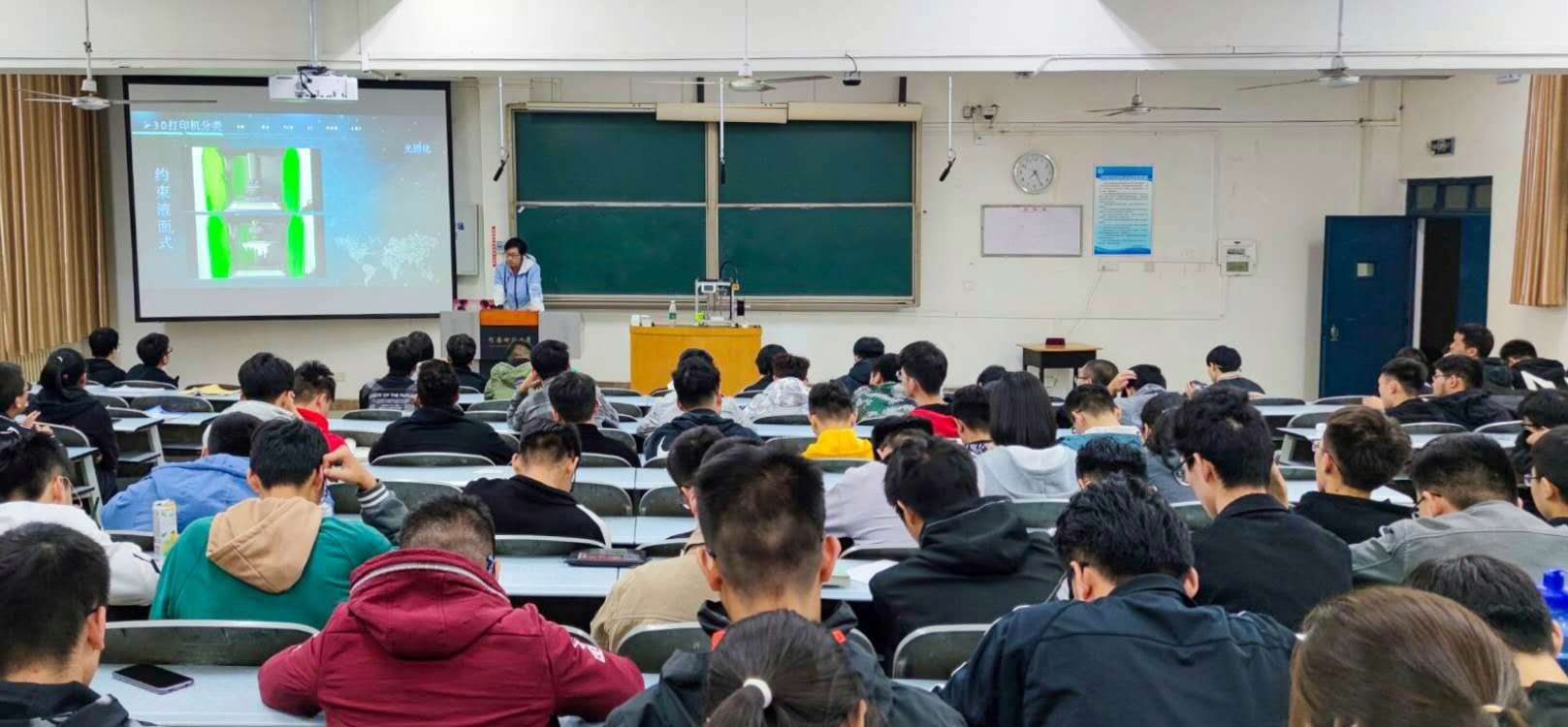 在公教三区107教室举行3D打印座谈会,主讲人为每日大赛