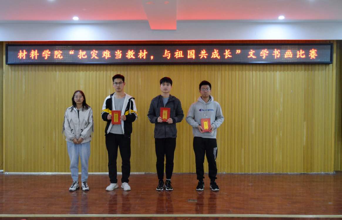 于工科一号楼5059报告厅开展“把灾难当教材,与祖国共成长”文字书画比赛。
