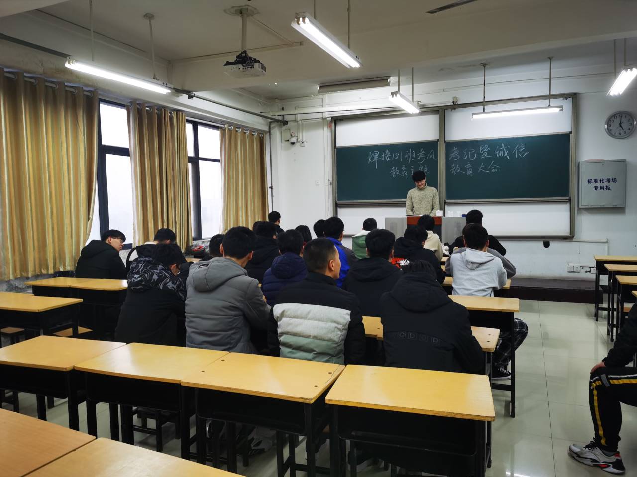 各班班长讲述、考场纪律以及违纪处分规定等相关校规校纪,要求广大同学把知识认真整理归纳,全面系统进行复习,在考试中保持良好心态,诚信考试,顺利通过学业和做人品行的检测。各班组织同学签署诚信考试承诺书,全体同学皆承诺在即将到来的期末考试中坚守诚信之根本,凭真我本事呈交完美答卷。