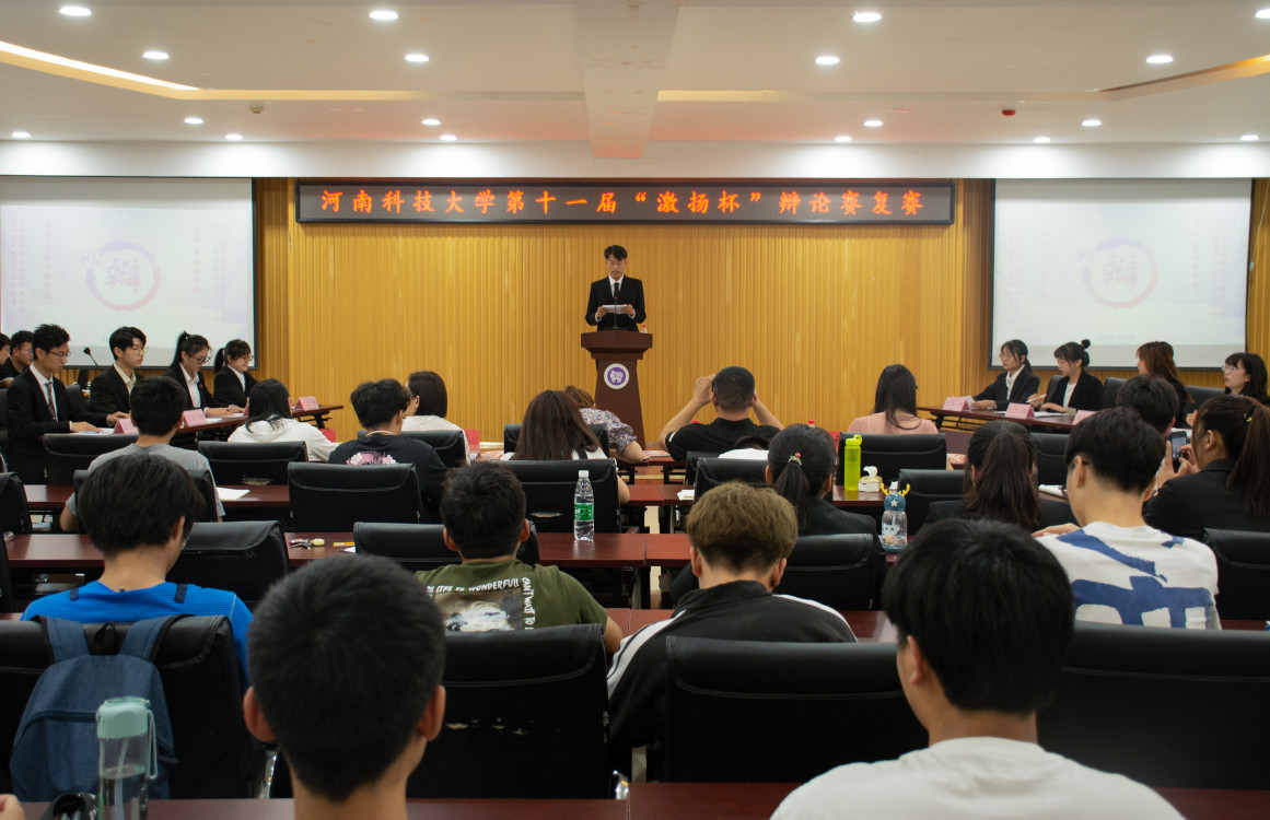 第十一届“激扬杯”辩论赛复赛A、B组在工科一号楼5059报告厅举行。初赛胜出的食品与生物工程学院、基础医学院、每日大赛