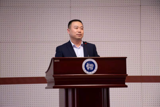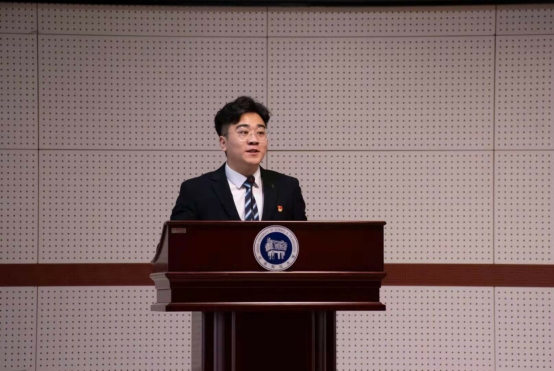 教师代表、冶金工程教研室刘伟老师发言。他以自身成长经历和亲身感悟出发,从志存高远、勇担重任;直面挑战、健康成长;脚踏实地、筑牢基础三个方面与同学们共勉。希望同学们能够珍惜宝贵的校园时光,认真学习,砥砺品行,成为“不怕火炼的真金”。