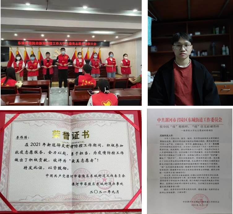 李伟博同学和杨慎慎同学积极加入家乡疫情防控志愿者队伍的行为表示肯定和感谢。