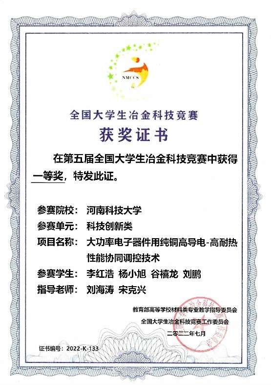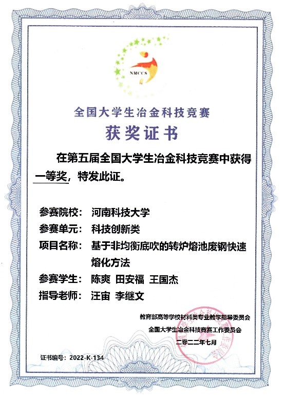 近日,由教育部高等学校材料类专业教学指导委员会主办、江苏科技大学承办的第五届全国大学生冶金科技竞赛落下帷幕。经作品初评、专家会评、现场答辩等环节,每日大赛