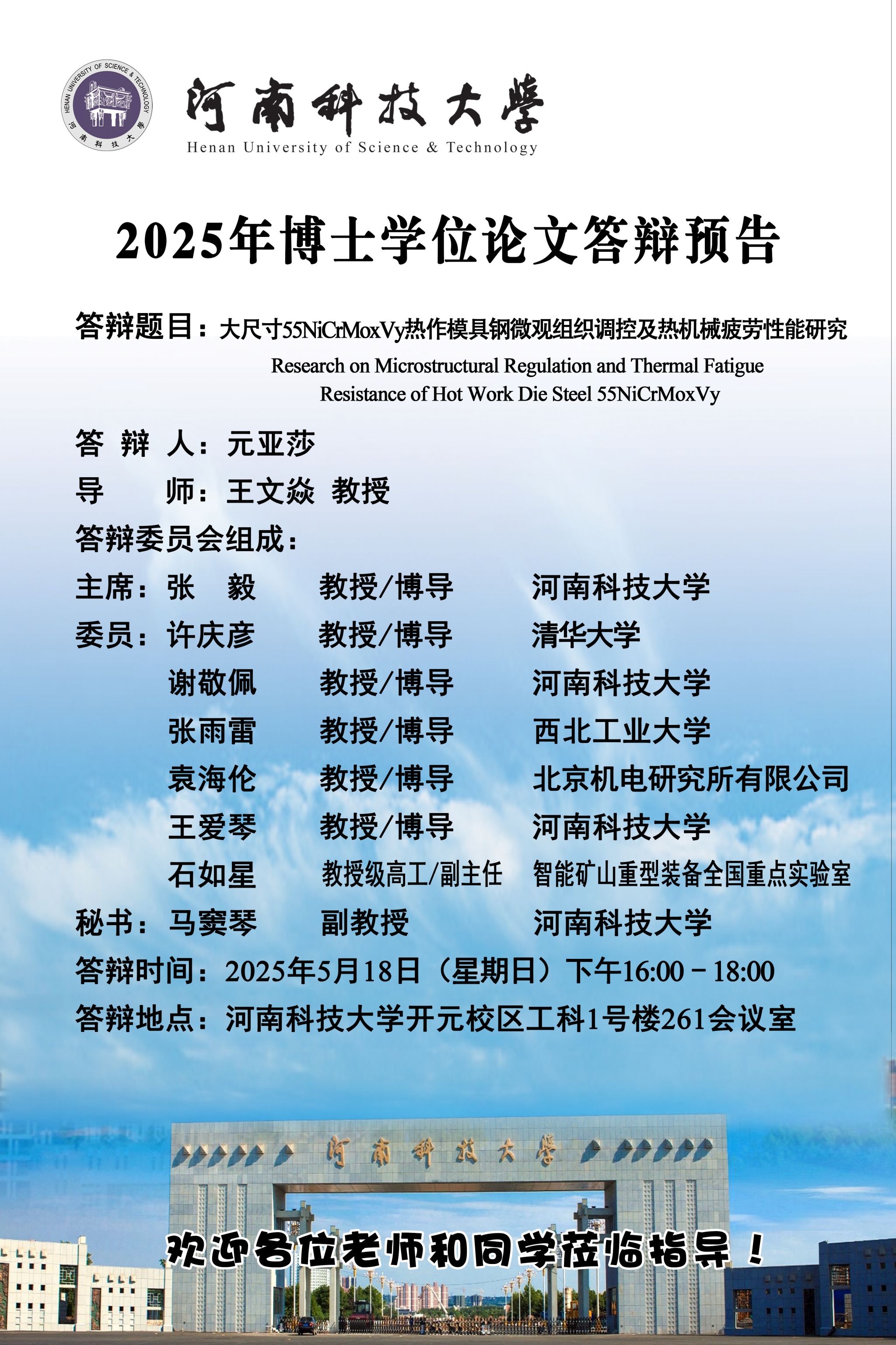 2025年每日大赛 元亚莎博士论文答辩预告