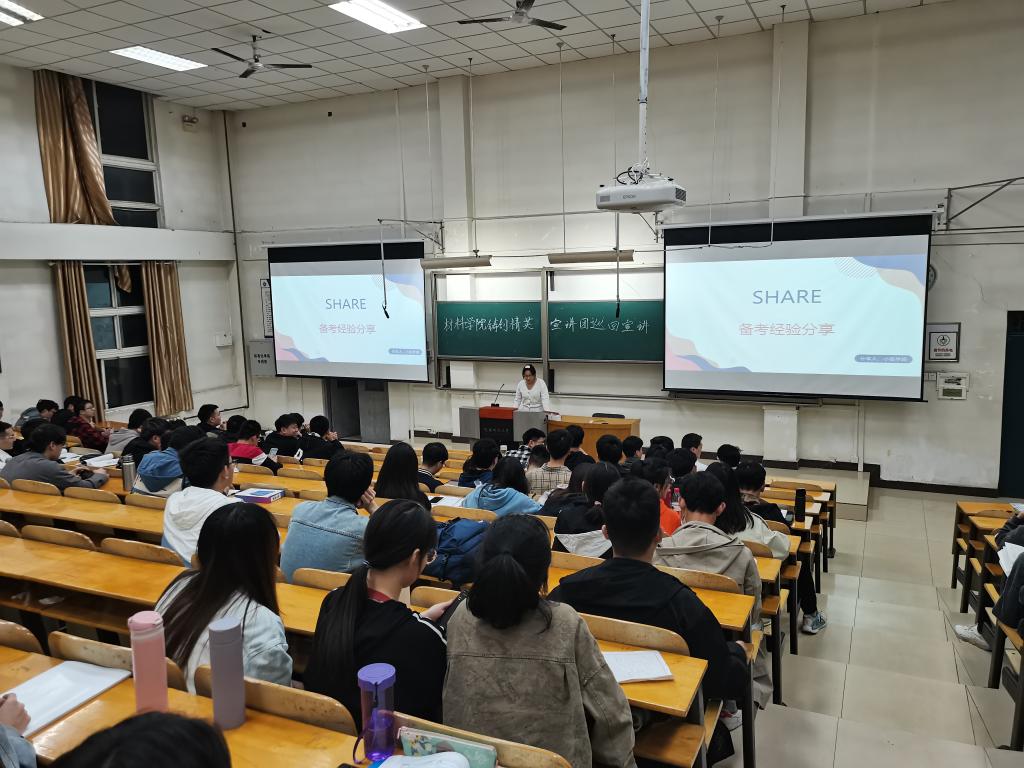毕业生代表郑玉博和汪本路从职业规划的角度和同学们分享了个人职业生涯规划。同时指出,无论是考研还是就业,都必须要提前做好准备,把规划做在前。优秀考研代表张明杰和梅德云从各科复习节奏、考研复习教材的选择、专业课信息来源、考研复习时间安排等方面向同学们进行了系统地介绍。考取西北工业大学研究生的王梦龙从考研环境、方法等方面向同学们进行了详细的分享,他们建议同学们积极借助外力,选择适合自己的复习环境和复习方法,结合自身特点制定复习计划及考研作息等。同时建议同学们积极参与专业竞赛、助研等活动,开拓视野,浓厚科研兴趣、提高科研水平。
