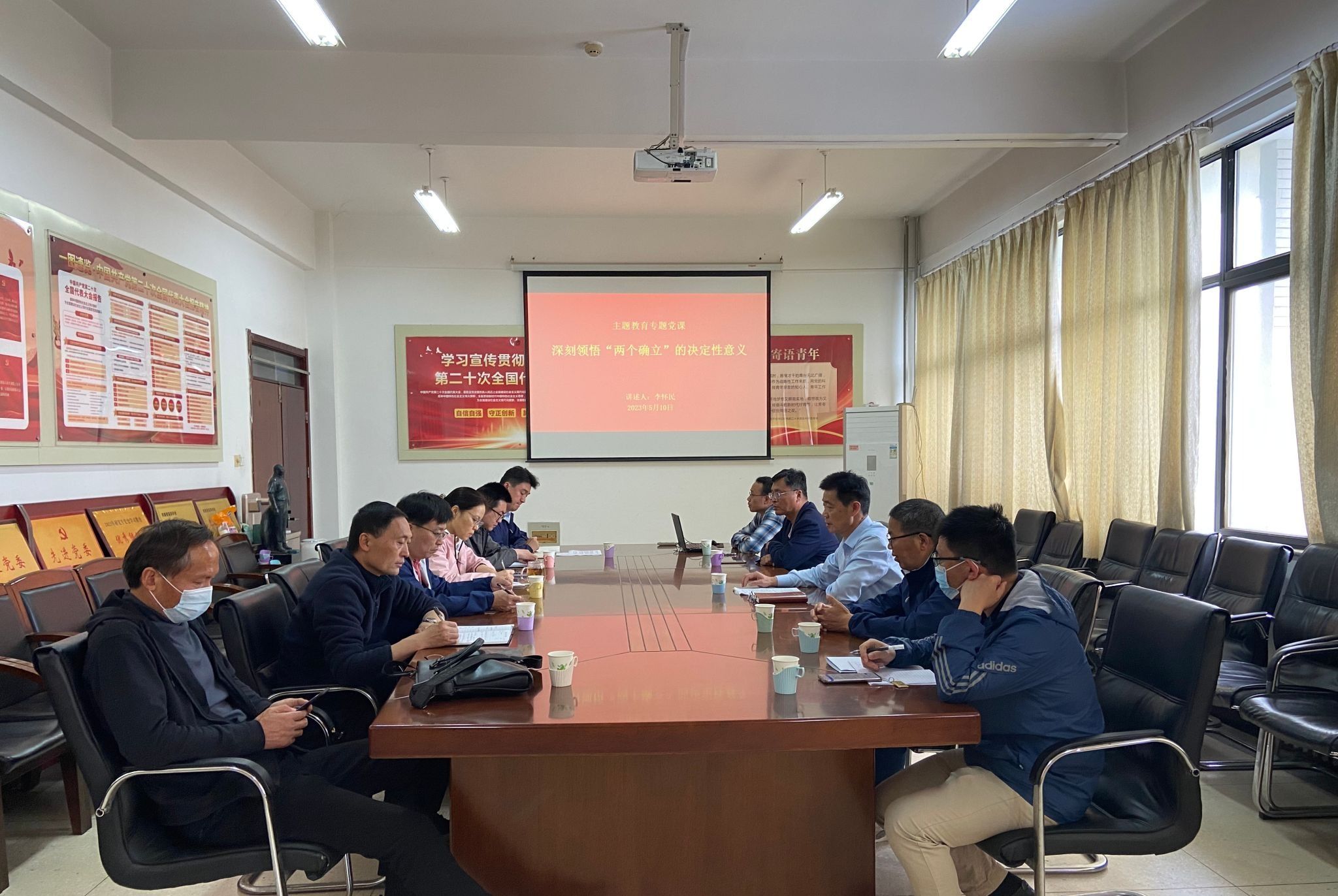 5月10日下午,学院党委书记李怀民以“深刻领悟‘两个确立’的决定性意义”为题,在工科一号楼203会议室为所在的无机非金属材料党支部讲授主题教育专题党课,支部全体党员参加听课。