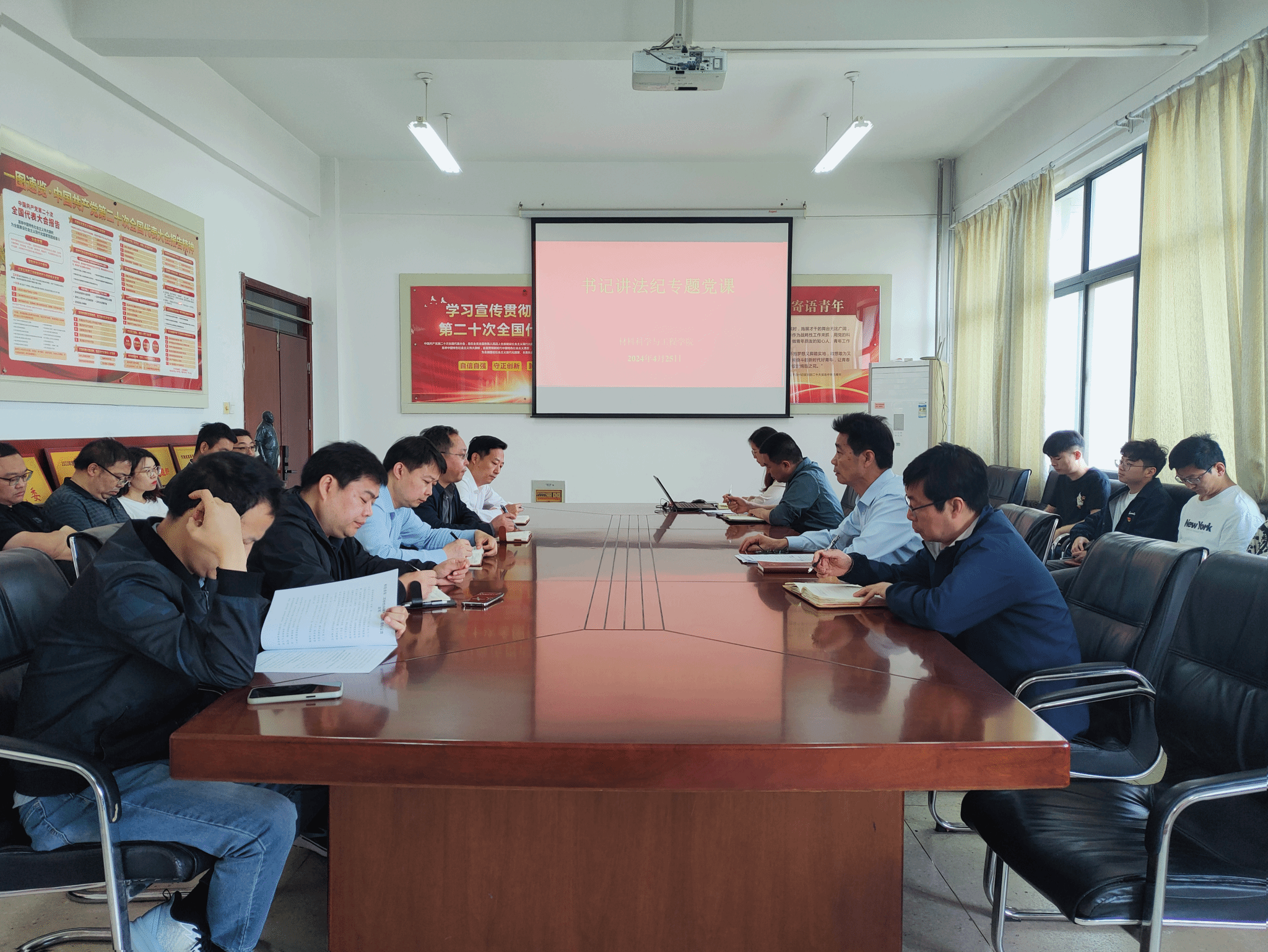 4月25日,学院在工科一号楼203会议室召开党委(扩大)会议,部署开展学院的党纪学习教育工作。