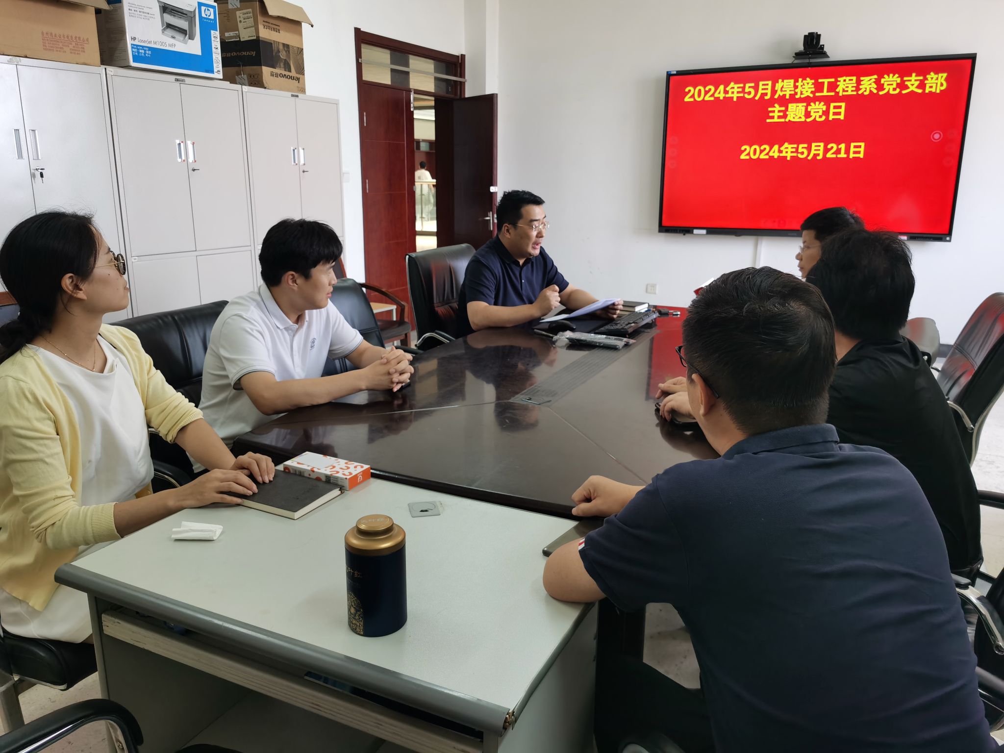 焊接工程系党支部在工科1号楼5045会议室开展“明确目标学条例 对标践行守纪律”主题党日活动,此次活动由焊接工程系党支部书记张鑫主持,支部全体党员参加。