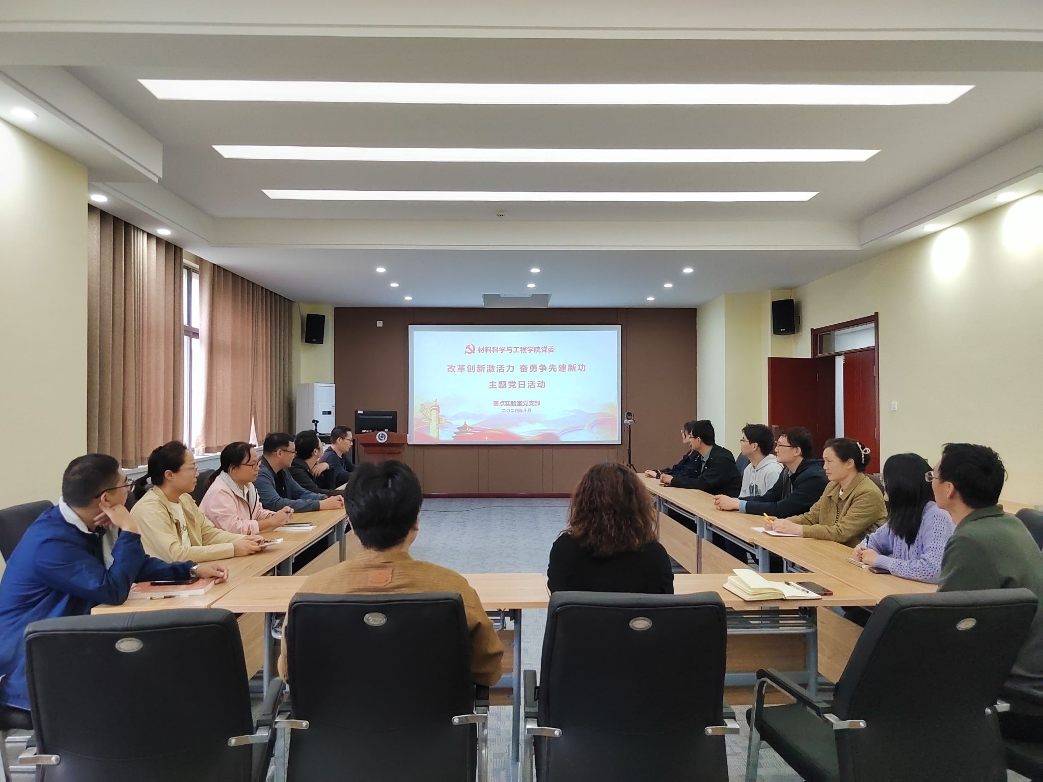 10月12日下午,重点实验室党支部在工科1-316开展“改革创新激活力 奋勇争先建新功”主题党日活动。活动由党支部书记周志丹主持,支部全体成员参加。