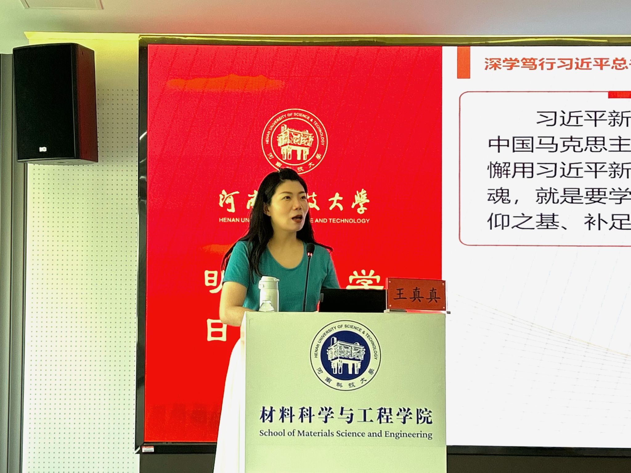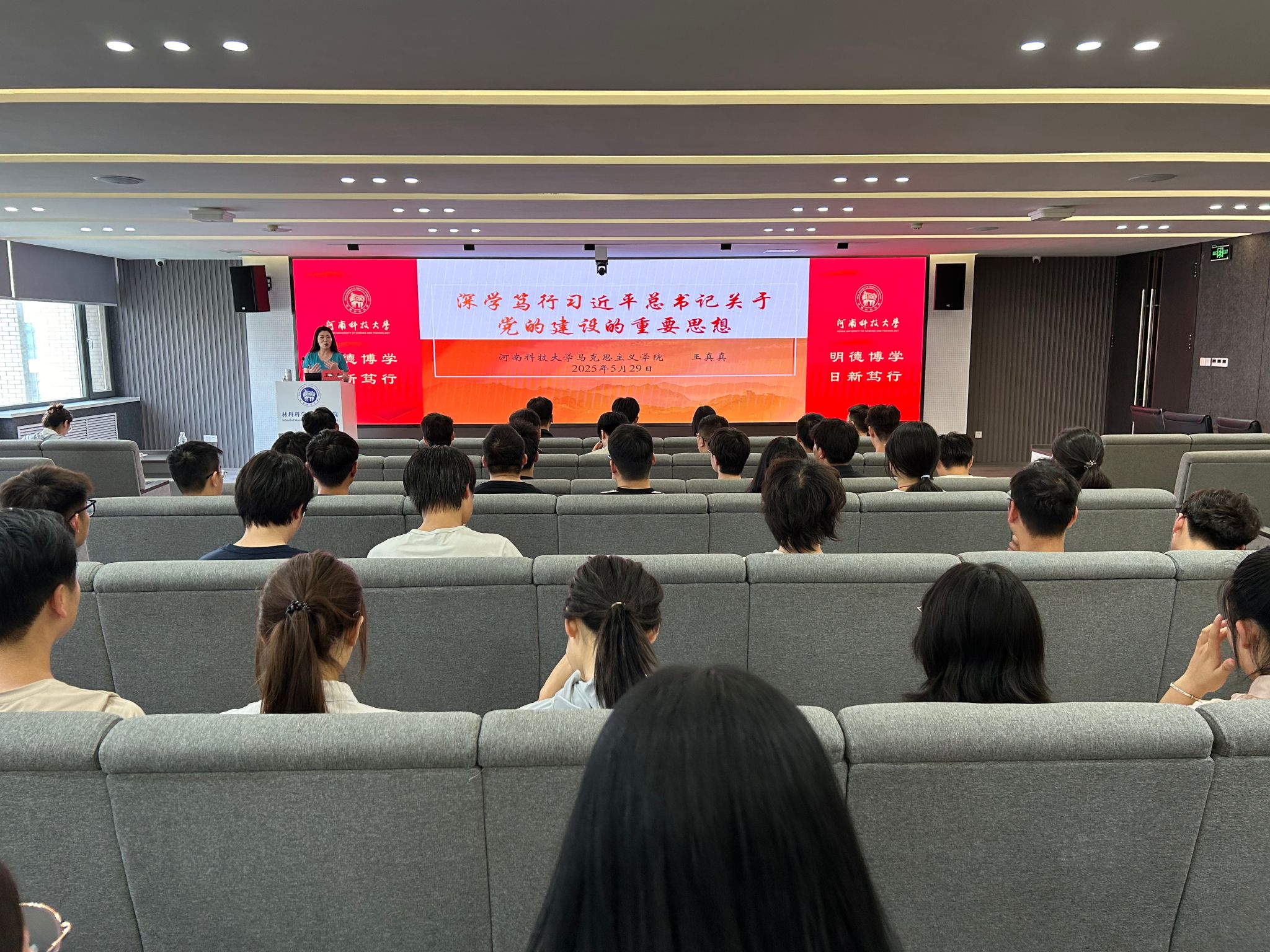 在工科一号楼 5059学术报告厅成功举办 “理论讲堂”专题讲座。本次讲座特邀学校理论讲堂宣讲团成员、马克思主义学院专任教师王真真作题为“深学笃行习近平总书记关于党的建设的重要思想”的专题报告。