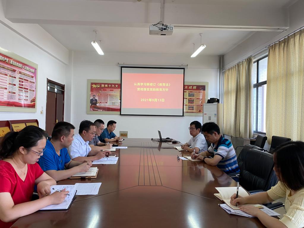 会前,与会人员围绕新修订的《中华人民共和国教育法》,认真进行了自学。会上,组织委员郭俊卿同志围绕修订的重点内容做了分享,他认为新修订《教育法》从“入学资格”“招生工作”等细微处着手,进一步充实了教育内容、完善了教育方针,对推动教育高质量发展具有重大意义。