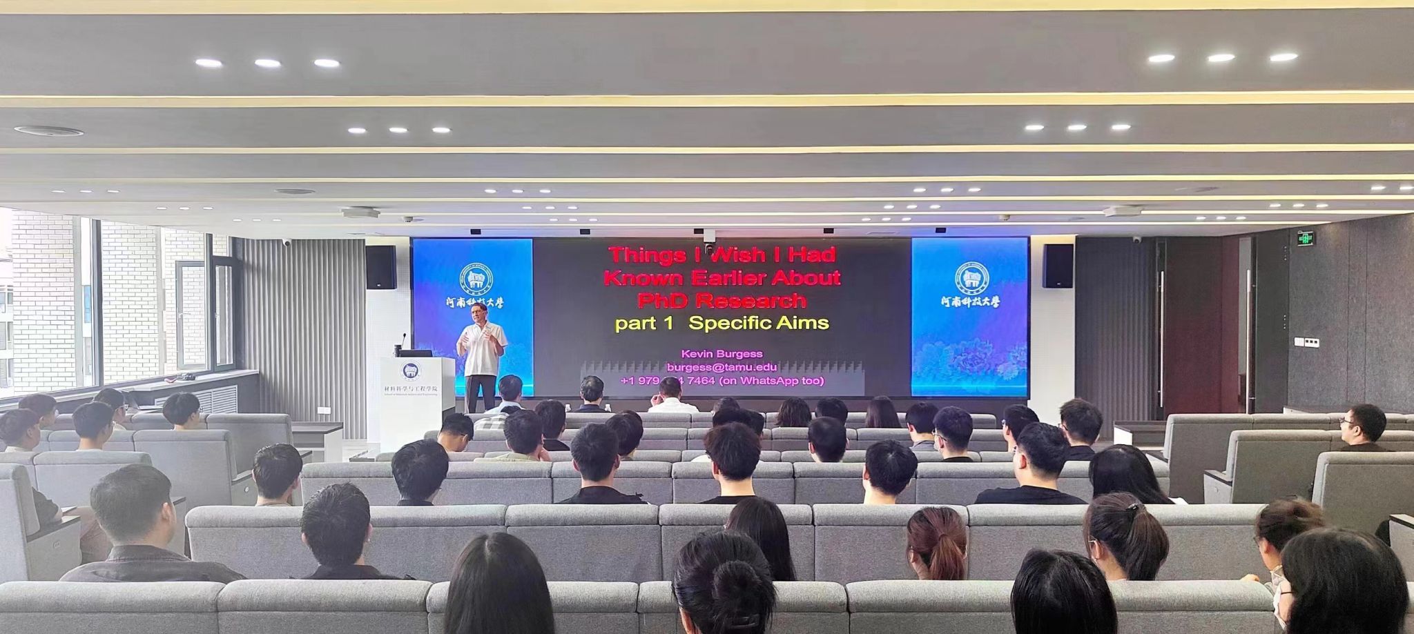 Kevin Burgess院士的报告以《Things I Wish I Had Known Earlier About PhD Research》为题,围绕研究生科研选题与选题方法、设计研究方案、验证设计方案、总结分析并提出关键创新点等方面,对研究生如何做好科学研究进行了详细阐述。报告会后,Kevin Burgess院士与参会师生进行了广泛交流。