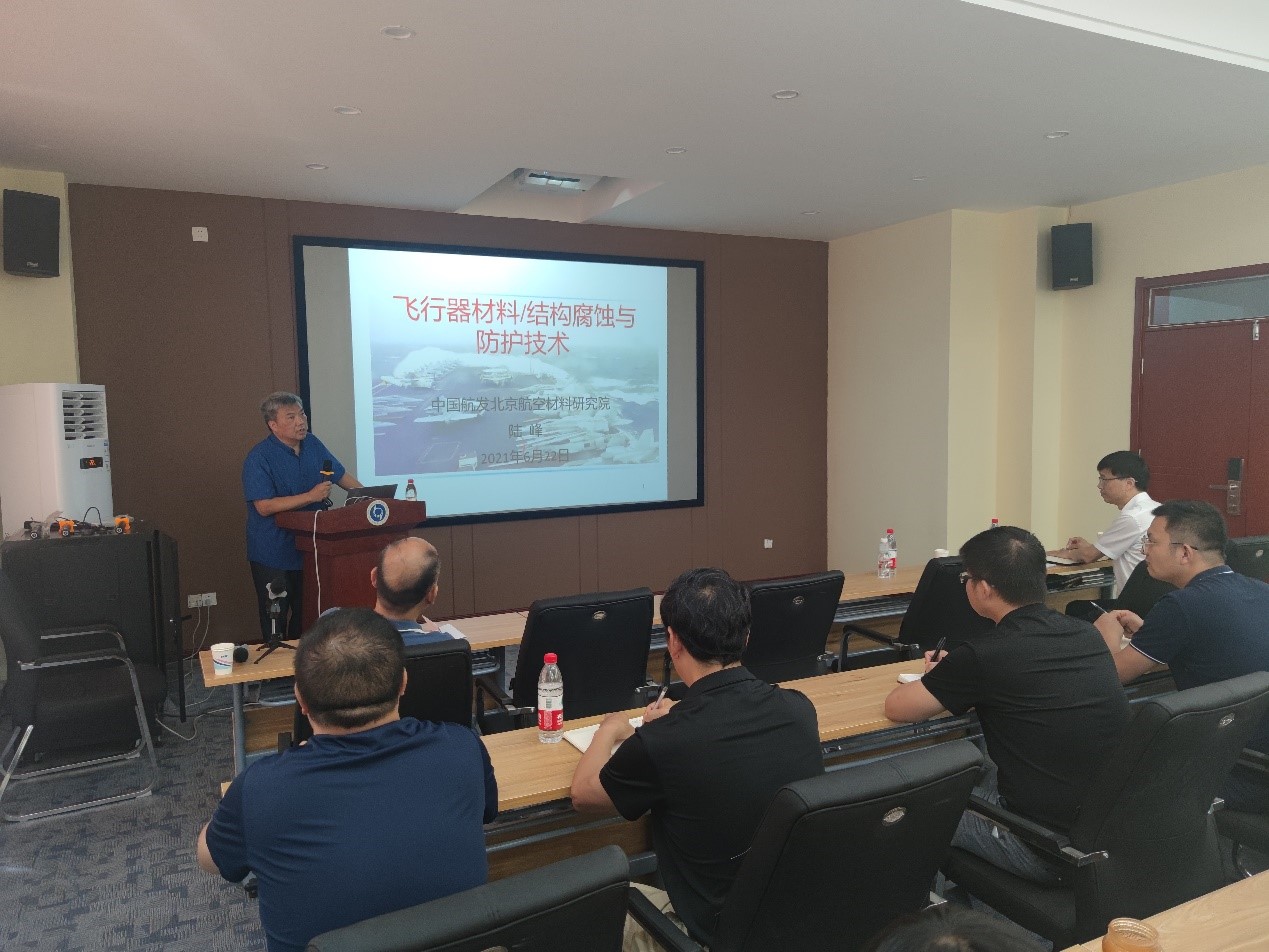 陆峰研究员首先简要介绍了飞行器的服役环境与腐蚀特点,在此基础上,详细介绍了飞行器的材料/结构腐蚀案例和特征、飞行器结构/设计腐蚀控制技术、使用维护与修理技术、航空发动机涂层技术等。报告会后,陆峰研究员就相关学术问题与在座师生进行了讨论。