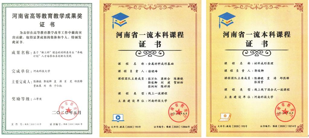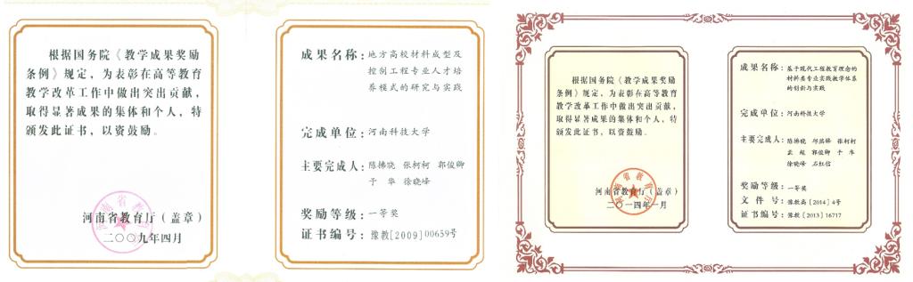 河南省信息技术教育优秀成果(应用成果类)三等奖 |